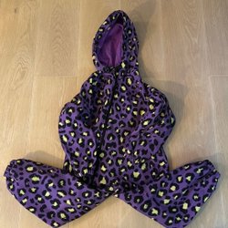 Svart overall från Mini Rodini med en söt pandahuvuddesign. Overallen har två dragkedjor framtill för lättare på-/avtagning. Reflexdetaljer finns nedtill på benen och på ryggen. Luvan är avtagbar. Mycket fint skick! Onamnad. Kommer från djur- och rökfritt hem.