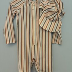 Svart overall från Mini Rodini med en grön foder med tryck. Overallen har en dragkedja framtill, två fickor med dragkedja och reflexer på ärmar och ben. Justerbar storlek i midjan. Saknas resår vid benöppningen, men knappar finns inuti för att sätta in nya. En liten liten lagning i baksidan av ena benet, se bild.