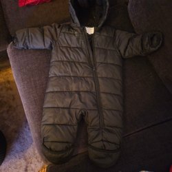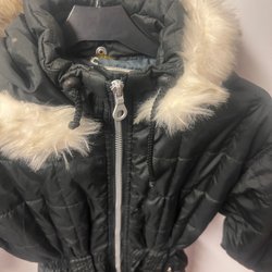 Söt overall med björnar och träd på svart bakgrund. Overallen har en huva med teddyfoder.