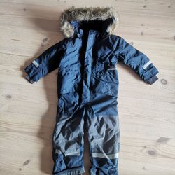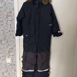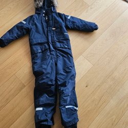 Didriksons overall i mörkblått med röda detaljer och reflexer.Stl 120