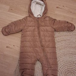 Söt brun overall med huva och öron. Dragkedja framtill. Liten i storleken.