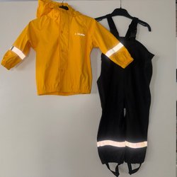 Tyvärr trasigt tyg nära grenen där övervik för fötter är. Säkert lättfixat av den händiga.