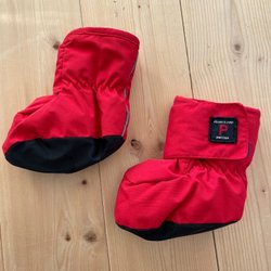 Står emot vind och vatten väldigt bra, har ett skydd för hakan och en dragkedja som går längs med benet.
