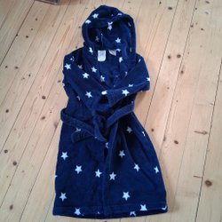 En jeansoverall med huva. Overallen har två dragkedjor som går från halsen ner till benen, vilket underlättar påklädning. Ärmslut och benslut har resår. Hel och ren, i mycket gott skick, bara lite tvättpåverkad och luddig (främst invändigt).