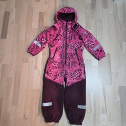 Söt rosa overall med Minnie Mouse motiv. Overallen har en huva med små öron och dragkedja framtill. Den har även inbyggda vantar.