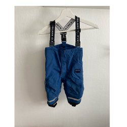 Blå vinteroverall med gröna och grå detaljer. Ställbar midja.