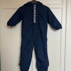 Av märket Tuxer i storlek 140. Med luva, dragkedja ock kardborreknäppning fram och två fickor med dragkedjor. Extra knappar finns kvar och sitter på insidan av overallen. Hällorna finns ej kvar, men det finns att köpa om så önskas. I bra använt skick.