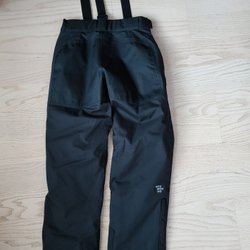 Svarta täck / skidbyxor med hängslen. Extremt lite använda, som nya. Fickor i sidorna och reflexrand baktill.