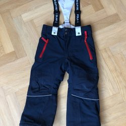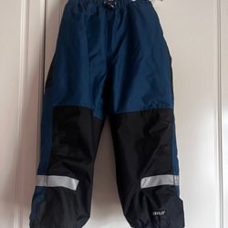 Säljer marinblå termobyxor från POP. Äldre modell. Reflekterande detaljer. Byxorna har hängslen. Något högre skurna i ryggen med resår i midjan. Kardborreknäppning vid benslut. Fleecefodrade.