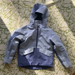 Svart skaljacka Everest med blå detaljer och huva i stl 122-128. Välanvänd, men har fortfarande mycket att ge. Två hål på höger armslut, se bild 5, i övrigt hel och ren. Kommer från djur- och rökfritt hem.