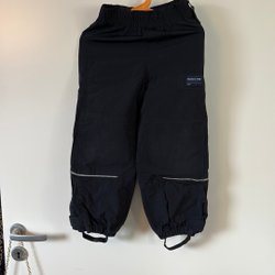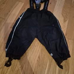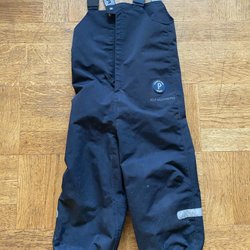 Svarta skalbyxor PoP med hängslen, dragkedja på sidan, ficka och reflexer nedtill.