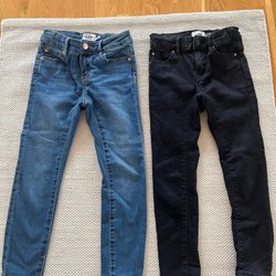 Svarta skalbyxor med resår i midjan. Byxorna har en reflexrand nedtill på ena benet. Storlek 134/140, inköpta på Lindex.