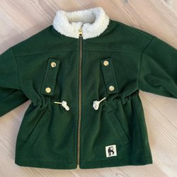 Färgglad jacka med ett unikt mönster av skogsdjur, växter och svampar. Jackan har en huva och dragkedja framtill, samt fickor med dragkedja på sidorna.