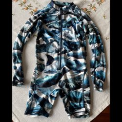 Ljusblå jacka med dragkedja framtill och två fickor med dragkedja. Jackan har en huva och ett grått foder som går ta bort.Samfraktar.