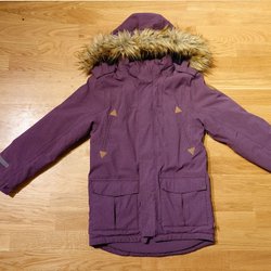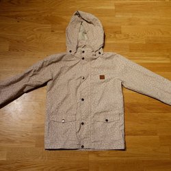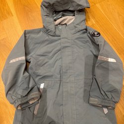 Välanvänd av två barn så visst slitage finns. Även ett par små hål på ena ärmen -se bild. Kan även behöva impregneras på nytt.