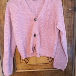 Rosa skaljacka med dragkedja och tryckknappar framtill. Jackan har en avtagbar huva, två fickor med dragkedja fram och reflexdetaljer på ärmarna, ryggen och nederkanten. Finns fläckar, se bilder.