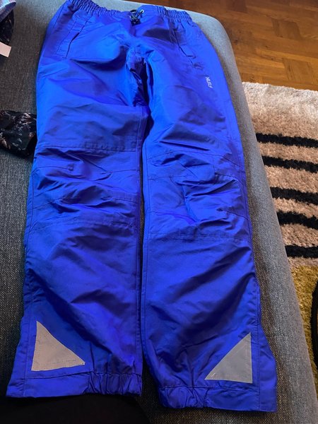 Ett par skalbyxor med resår i midjan och bensluten. Byxorna har reflexer nedtill på båda benen. Strl 150