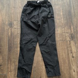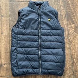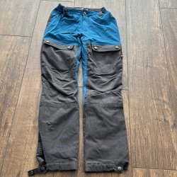 Marinblå jacka med huva och dragkedja framtill. Jackan har två fickor med dragkedja i midjehöjd. Ärmsluten har kardborreband för justering och det finns dragsko i nederkanten för en anpassad passform. Mycket reflexer på jackan. Finns ett litet vitt märke som ej går bort, se bild sex.