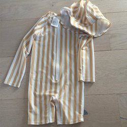 Vindfleece från P.O.P i stl 86, är i använt skick då den använt av 3 barn på förskola. Den är hel och ren förutom på ärmarna, se bilder.