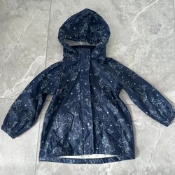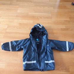 Regnjacka med huva. Jackan har reflexer på ärmarna. Mycket fint skick!