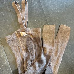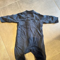 Lila fodrade regnjacka och byxor från Didriksons med reflexer och avtagbar huva. Det finns lite skavanker här och var men inget som hindrar funktion och som inte kan lagas, därav det billigare priset för man behöver kanske köpa till ny förstärkning till knäna. Men känns synd att det inte används mer.