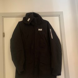 En regnjacka från Kuling. Byxa från pax Stället består av en jacka med huva och ett par regnbyxor med hängslen.