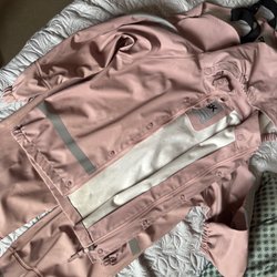 Blå regnjacka från Everest i storlek 110/116. Väldigt fint skick. Röda regnbyxor från polarn o pyret i storlek 110/116. Är lite ”bubblig” i tyget men inga hål eller revor.