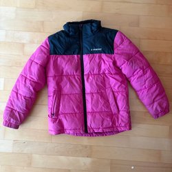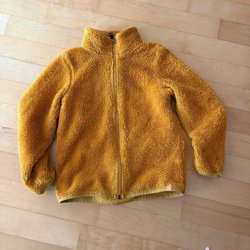 Ett par svarta fodrade regnbyxor stl 98/104 med fleeceöverdel från Kuling. Byxorna har resår i midjan och reflexer nedtill.