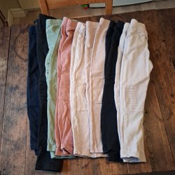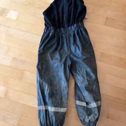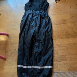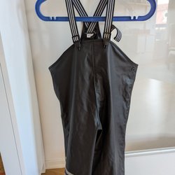 Begagnat skick. Inga hål. Hällorna är trasiga. En reflexremsa på vardera ben har lossnat i tvätten.