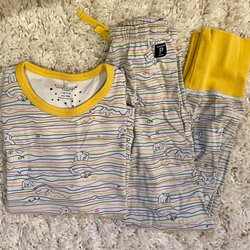 Setet består av en gul regnjacka med mörkblå detaljer och en matchande regnbyxa. Jackan har reflexdetaljer och en avtagbar huva. Byxorna har förstärkta knän och justerbara hängslen.