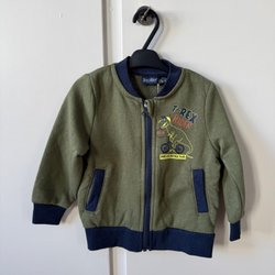 Fint ytterplagg med ett lekfullt mönster av hundar. Jackan har en huva och stängs med knappar. Reflexdetaljer finns på ärmarna. Knappt använd, ser helt ny ut