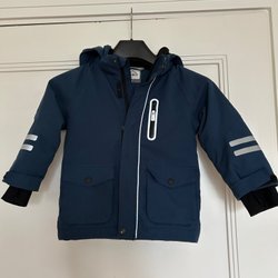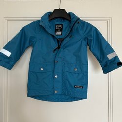 Superbra fodrat regnställ från Didriksons med jacka och byxor. Jackan har dragkedja framtill och huva. Byxorna har resår i midjan. Reflexdetaljer finns på både jacka och byxor. Gott skick och djur- och rökfritt hem. Str 100.
