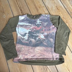 Ett set med regnkläder för barn. Setet inkluderar ett par blåa regnbyxor med hängslen och en grön regnjacka med huva. Märkta med reflexer. Byxorna aldrig använda och jackan använd någon enstaka gång, så i nyskick!