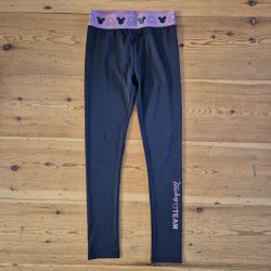 Svarta träningstights med resår i midjan och rosa tryck på ena benet.