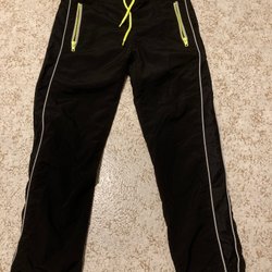 Två par träningsbyxor från SOC. Det ena paret är helsvarta med reflexdetaljer. Det andra paret är svart upptill och har olivgröna ben, samt fickor på sidorna.