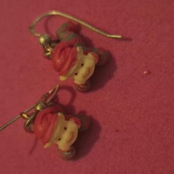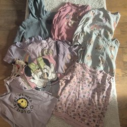 Söt rosa badrock med vita hjärtan och huva med små öron. Badrocken har två fickor fram och knäpps med knappar.Stl. 110-116 fån Kappahl. Beg. skick.