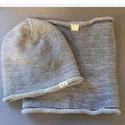 Ett par grå byxor i ullfrotté 100 % merinoull med muddar nedtill och resår i midjan.
