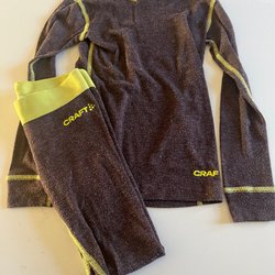 Gult till färgen. Tröjan har svaga fläckar framtill knappt synliga samt ett hål på magen, byxan är i fint skick. Kan fixas med tråd och nål. Dock fullt funktionsdugligt.