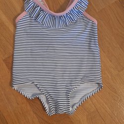 Blå, vit baddräkt