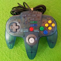 Original blå handkontroll i bra skick med oslitbar Gamecube spak till Nintendo 64
