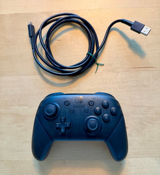 Nintendo Switch Pro handkontroll med tillhörande kabel. Fungerar felfritt