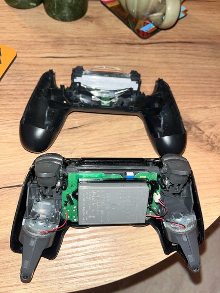 Demonterad Playstation 4 handkontroll. Perfekt för reservdelar eller reparationsprojekt.