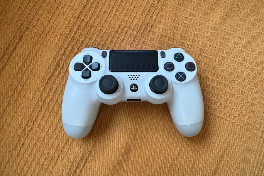 Trådlös handkontroll till Playstation 4. Vit färg. Inte sett mycket användning, fungerar exakt som den ska.