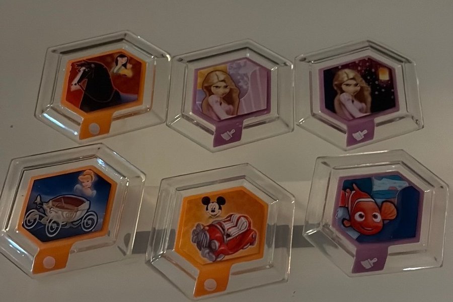 Säljer Disney Infinity Power Discs. Inkluderar Rapunzel, Nemo, Cinderella och fler.