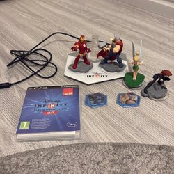 Disney Infinity startpaket med figurer och tillbehör. Inkluderar basplatta, figurer som Jack Sparrow, Mr. Incredible, Sully och Woody, samt power discs.