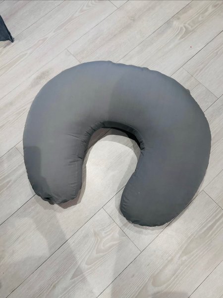Grå amningskudde i fint skick. Perfekt för dig och din bebis under amningen eller som sittstöd när bebis ska lära sig sitta själv .