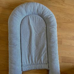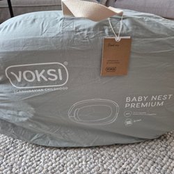 Babynestet har en mjuk madrass och höga, mjuka kanter. Babynestet kan även öppnas upp helt och användas som en lekmatta. Det finns en liten fläck på insidan av babynestet.