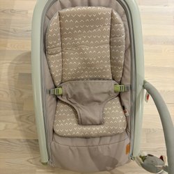 Babysittern ger barnet ett bekvämt stöd under både vilostunden och lekstunden. När barnet rör på sig och sprattlar med benen, gungar babysittern och vaggar barnet. Du kan även fästa på en så kallad lekbåge med klossar och leksaker för att hålla barnet sysselsatt.