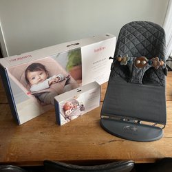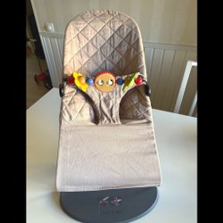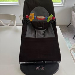 En babysitter från BabyBjörn. Den är perfekt för att vagga ditt barn till sömns eller för att ge en säker plats att sitta och leka. Lätt att ta med sig och enkel att rengöra.