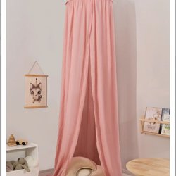 Sänghimmel i 100 % bomull, fin mörkgrå färg. Höjd ca 230-250 cm, justerbart genom att man knyter ihop tyget längst upp för upphängning på önskad höjd. Plastringen som håller ut tyget saknas, kan ersättas med t ex rockring eller annan ring, diameter ca 60 cm.